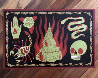 Hde Burning Church Poster Art Print Henry Derek Elis